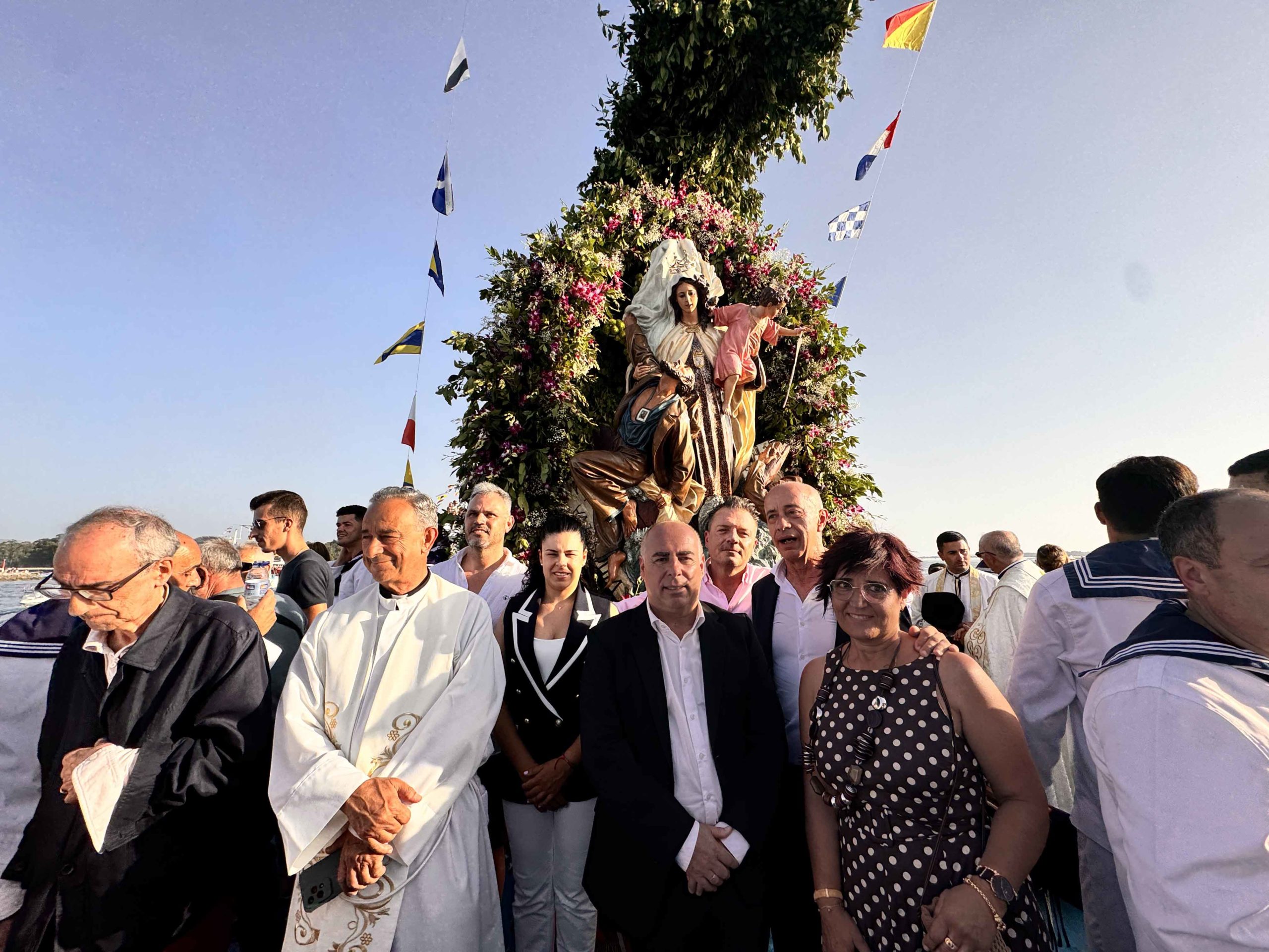 A jornada de ayer se caracterizó por la tradicional procesión marítima en la honra de la Virgen del Carme. Cientos de personas recorrieron a bordo de decenas de barcos engalanados el recorrido de la imagen de la patrona de las gentes del mar hasta el Faro de O Seixo, para finalmente realizar una emotiva ofrenda floral.